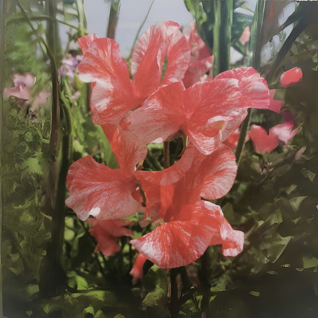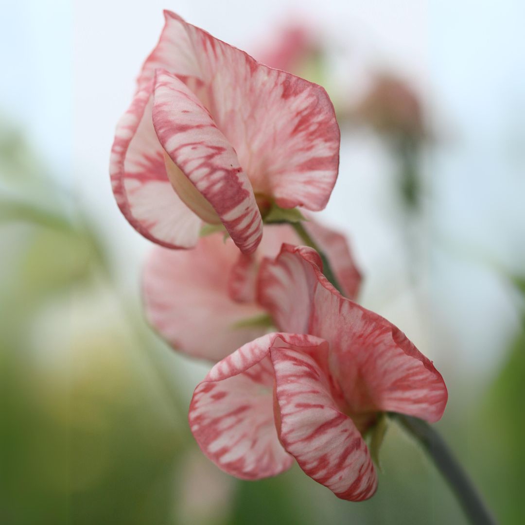 Dette er en sort erteblomst som vi gleder oss veldig til å teste. Kremhvit bunn med korallrosa tegninger på lange sterke stengler skal den ha. Det kan være lurt å ta en bildesøk for å få et bedre inntrykk av den. De bildene vi har fått ser ikke helt ut til å yte den rettferdighet.
