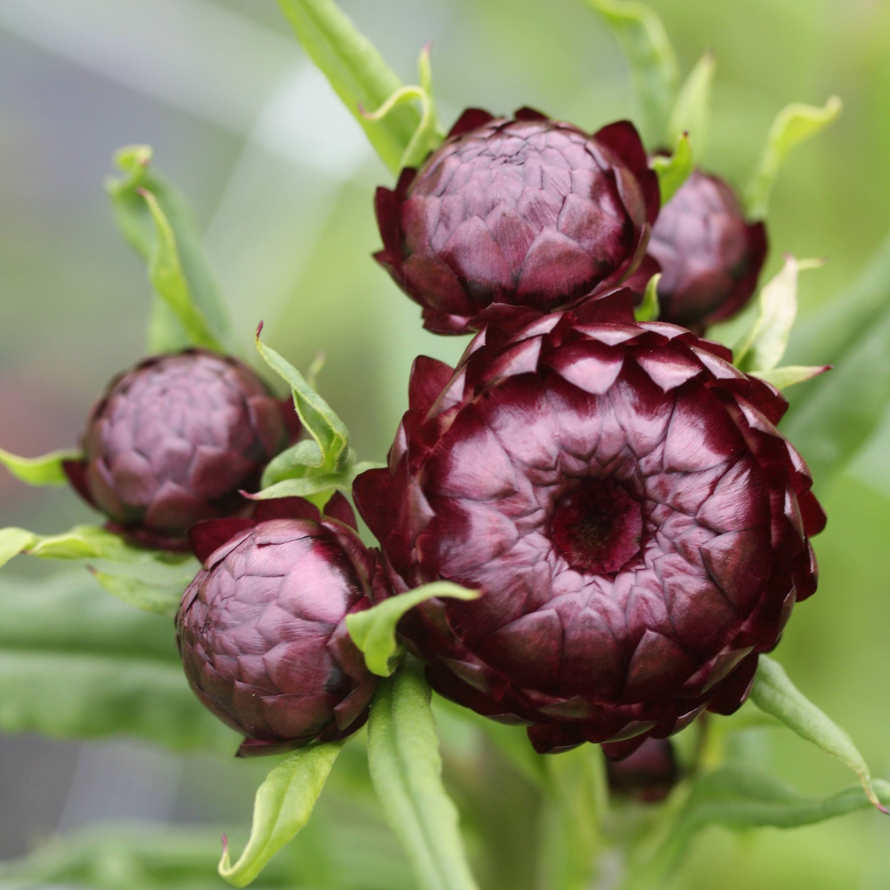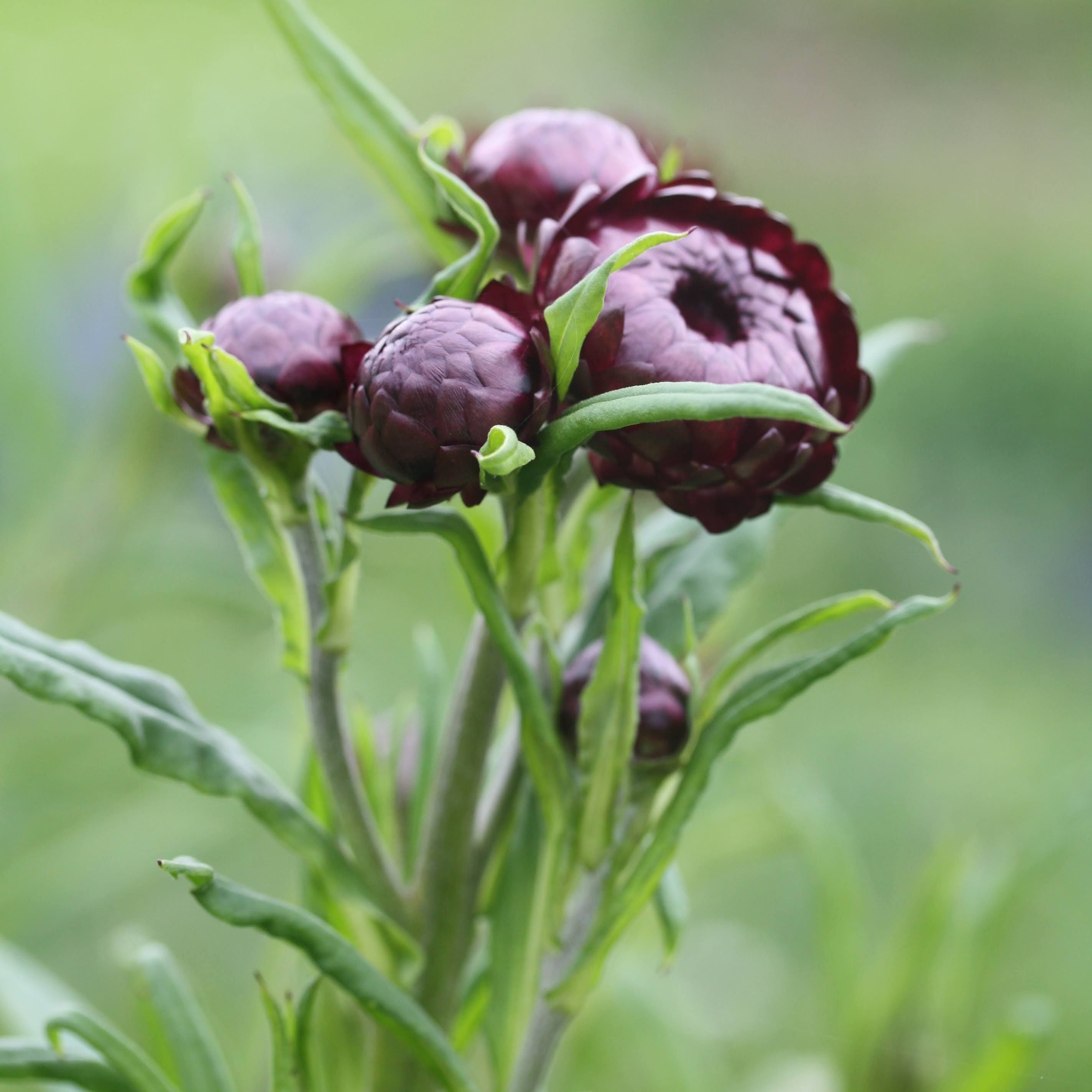 Høststråblomsten har fått ny oppmerksomhet, både som tørkeblomst, men ikke minst fersk. Det er utviklet nye fargekombinasjoner, og Purple Red har en sterk og dramatisk dyp burgunder farge, veldig mørk. Når den åpner seg viser den en oransjegul midte som er en fin kontrast. Plantene er høyreiste og flotte og hyggelige for pollinerende insekter også. Vi liker den riktig godt og dyrker høststråblomster hver sommer.
