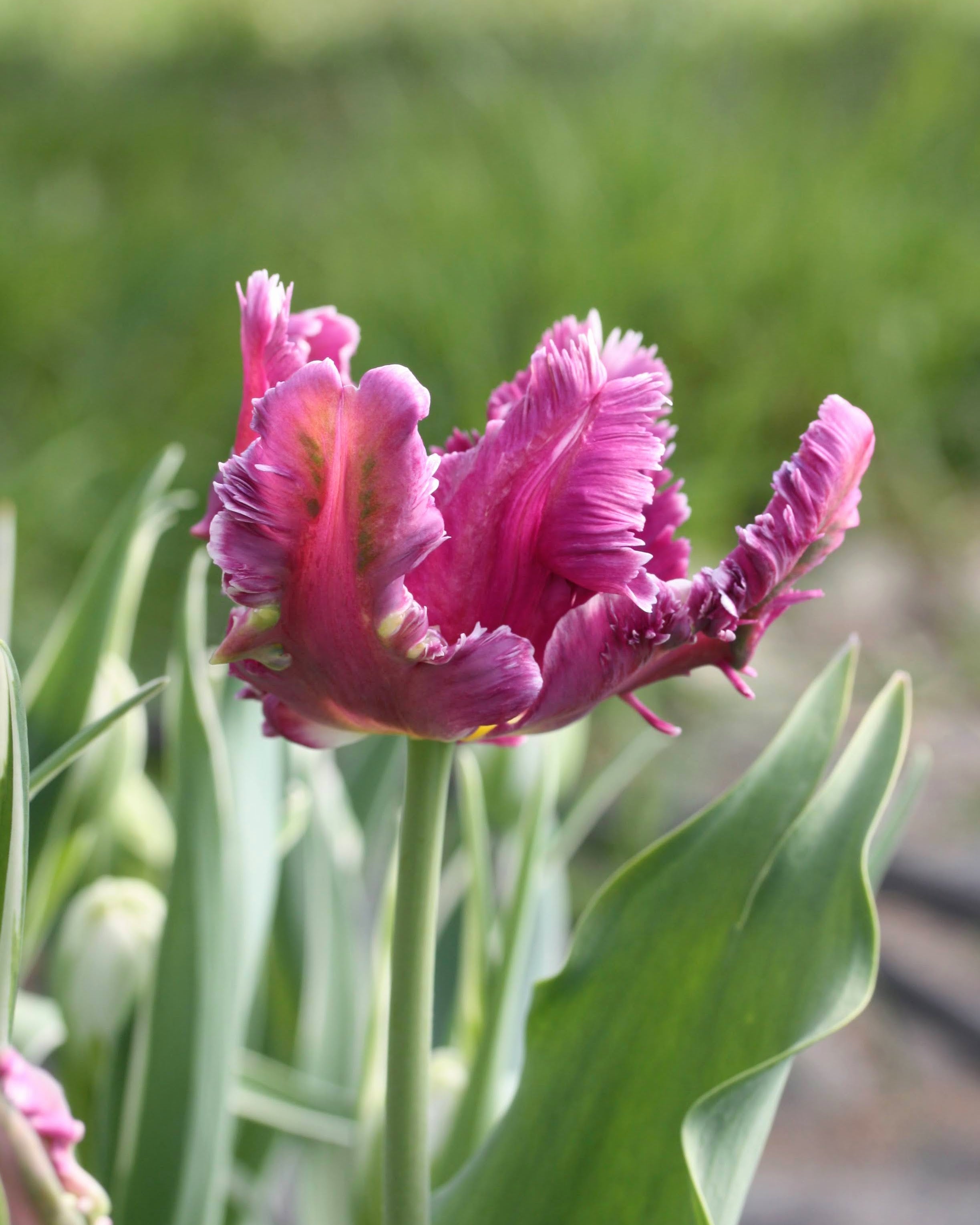 Papegøyetulipanene er mer enn livlige nok til å fylle en vase alene med iøyenfallende innhold, med sin uvørne form og snirklete kanter på kronbladene. Fargen på denne tulipanene er rik og sanselig, som vi kan trenge etter en lang vinter med sparsomme farger.