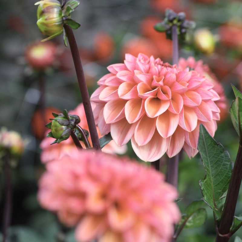 Med mykt rosa mot aprikose blomster og perfekt blomsterform, er Sweet Sanne alltid en godt likt georgine . Stengler og knopper er mørke, som gir planten en mer melankolsk effekt. En riktig god snittsort, med sine 120 cm og faste blomsterhoder.