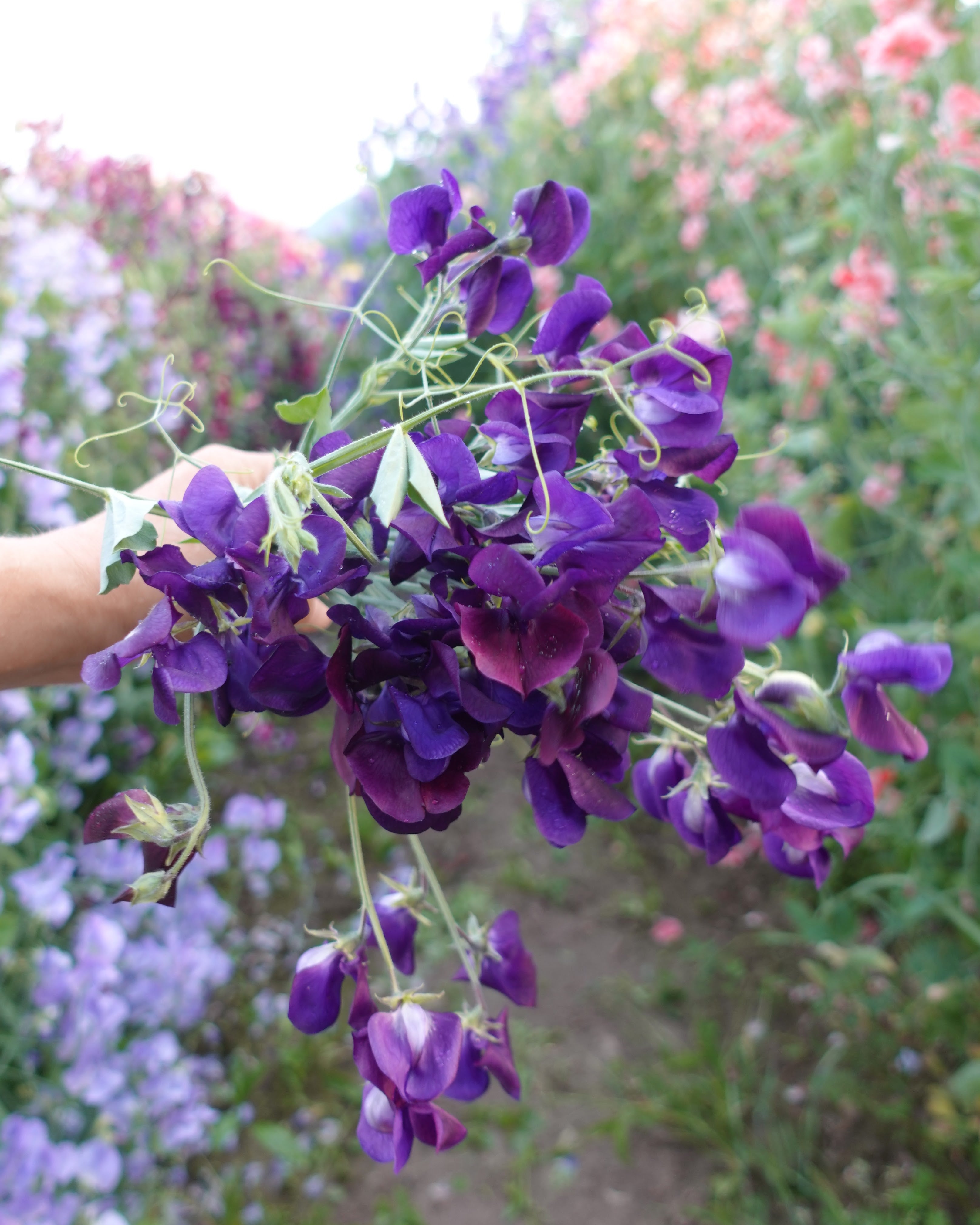 Når blomstringen begynner er det bare å plukke, ikke la de sette frø, da vil de etter hvert slutte å lage nye knopper. Plukk gjerne alle blomstene et par ganger i uken, det kommer mange nye. Vi høster de når 1-3 blomster på blomsterstengelen er åpnet. De har forholdsvis kort holdbarhet i vasen, 4-5 dager.