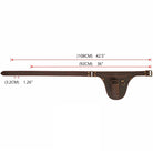Beltet er 116 cm langt, 108 cm til ytterste hull. Det har en vanlig beltespenne.